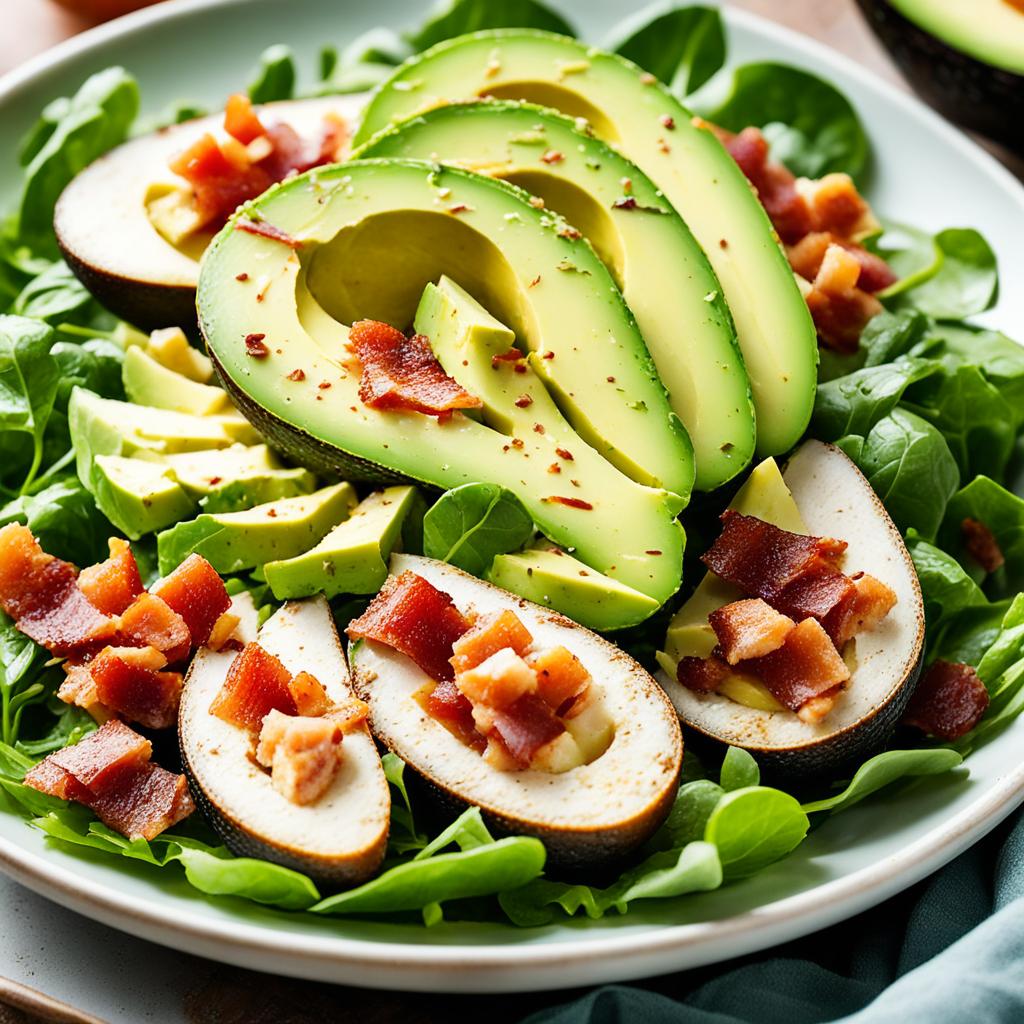 The creamy avocado slices tie all the salad elements together. Enjoy how it complements chicken, bacon, greens, and cheese.